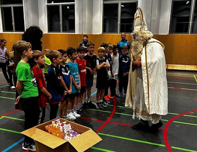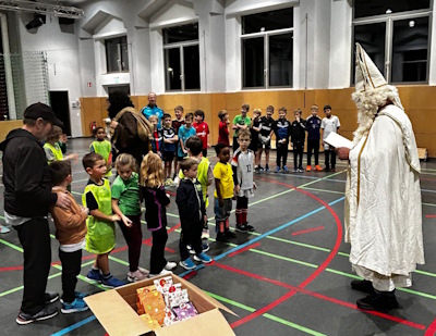Der Nikolaus besuchte die Bambinis, F- und E-Jugend im Training