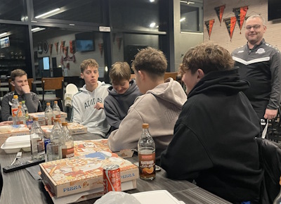 gemeinsam zurück aufs Hardt, wo es im Sportheim die vorbestellten Pizzen