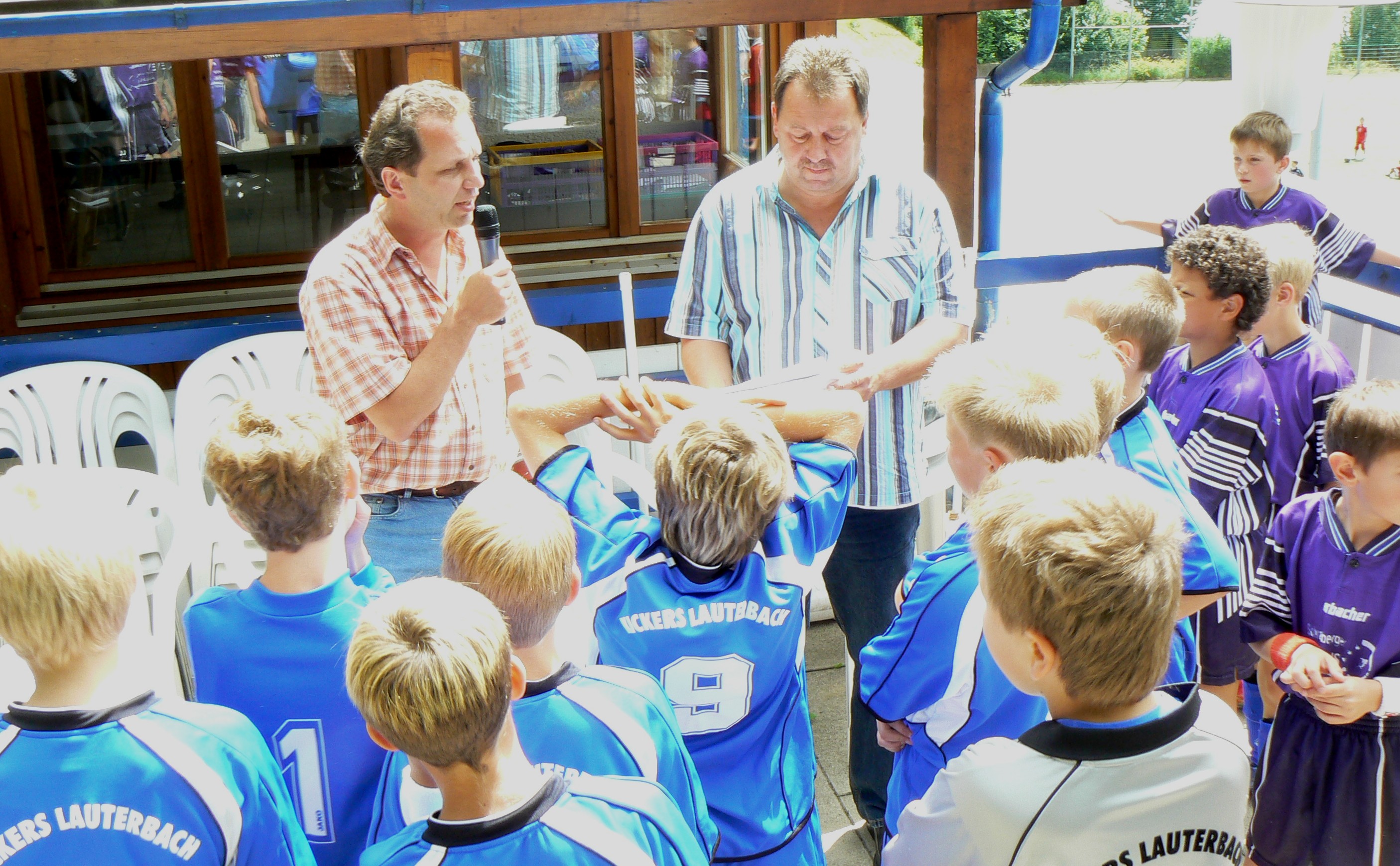 Turniersieger Kickers 09 Lauterbach I (stehend) und der Zweite SpVgg 08 Schramberg II