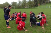 Die A-Jugend feiert nach dem gewonnenen Abstiegsendspiel in Waldmössingen den Klassenerhalt