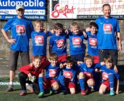 Die F-Jugend mit den Sponsoren ihrer neuen Trikots