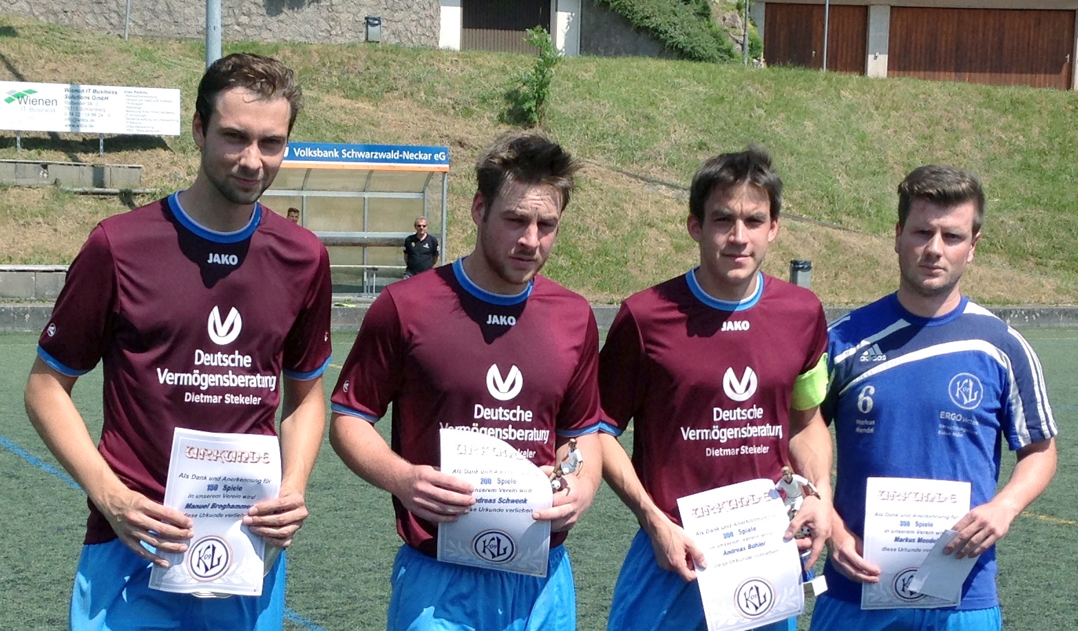 Spielerehrungen Saison 2014/2015 - Manuel Broghammer (150), Andreas Schwenk (200), Andreas Bühler (300) und Markus Mendel (300)