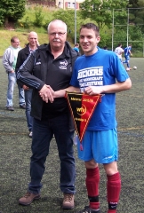 Staffelleiter Reiner Merz überreicht den Meisterwimpel