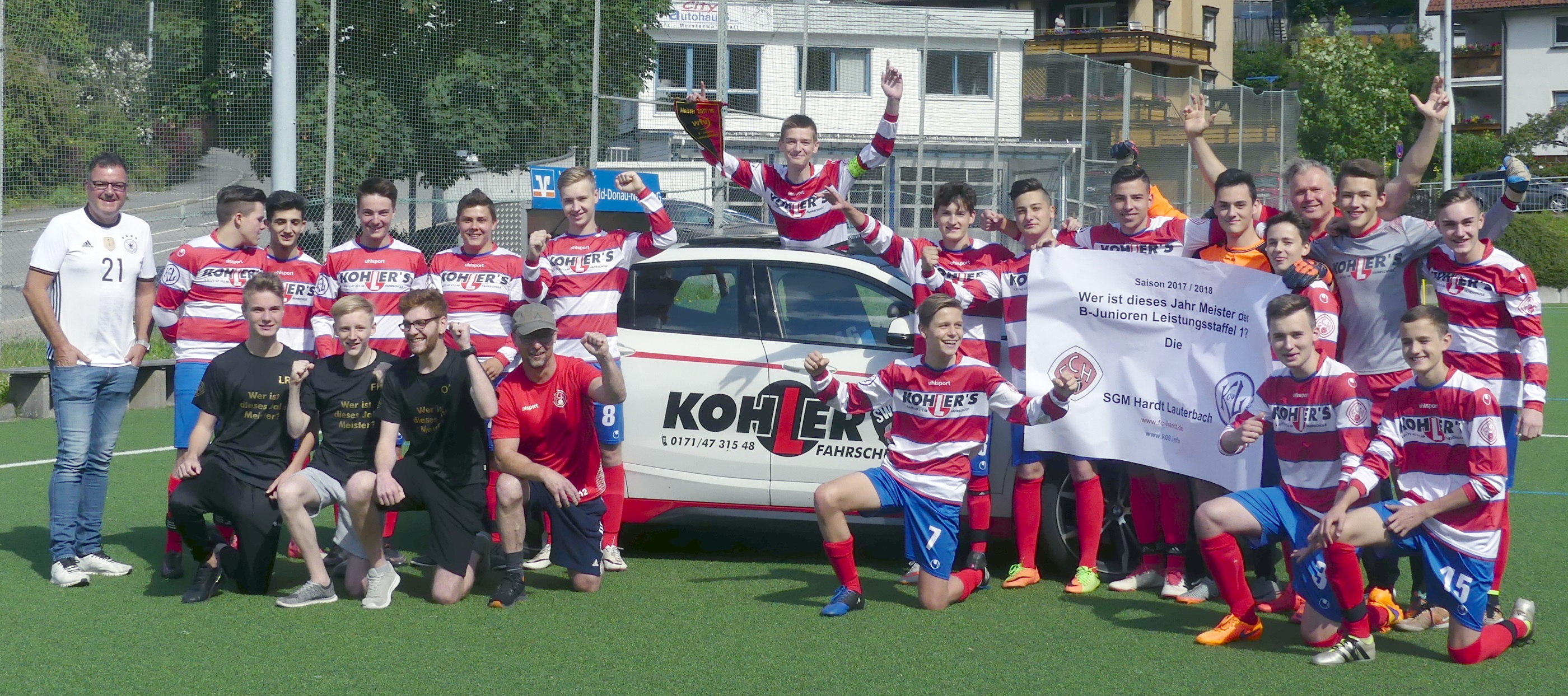 Meisterfoto mit dem Trikotsponsor