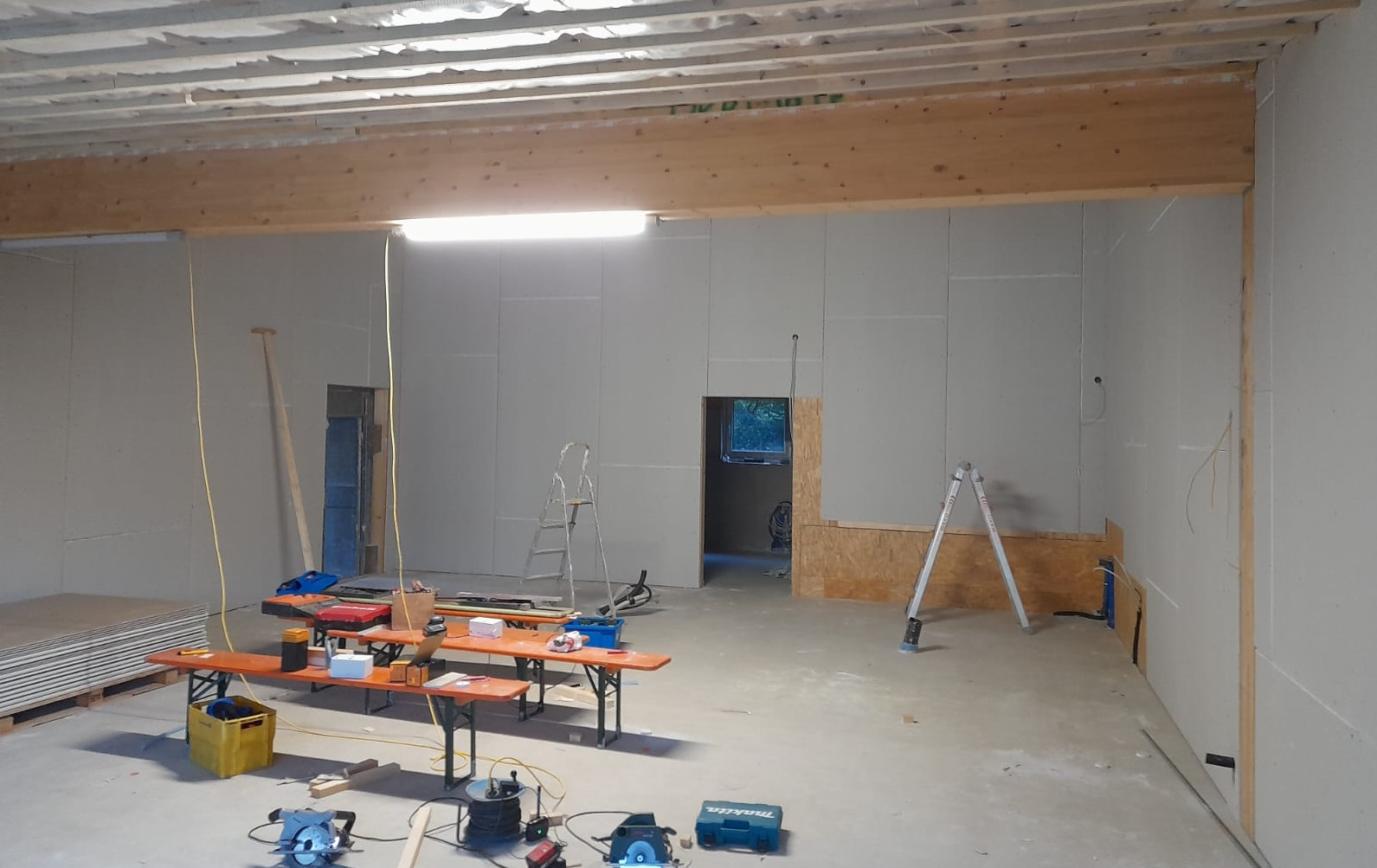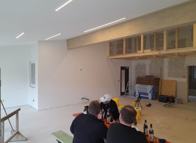 02./03.02.2024 - Gastraum verputzen und Beleuchtung installieren