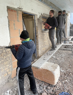 05.01.2024 - Ballraum ausräumen, alten Außenputz entfernen, außen dämmen