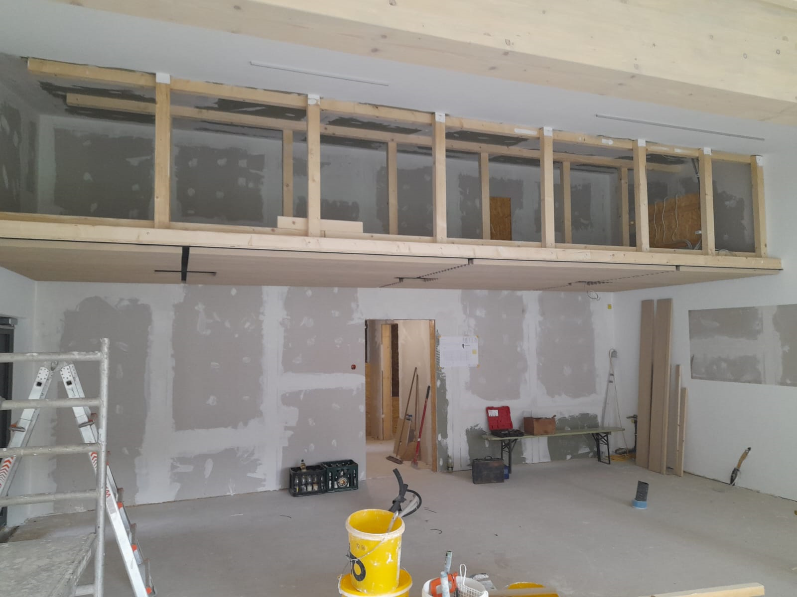 16.02.2024 - Deckenabhängung, Wände in Küche und Büro