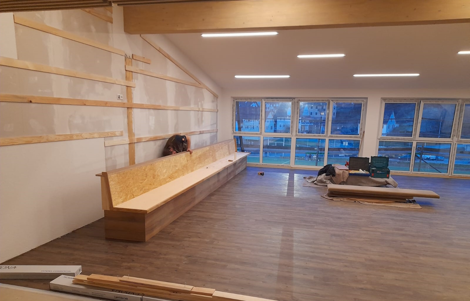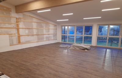 13.03.2024 - Sportheimboden legen, Küche streichen, Bänke stellen