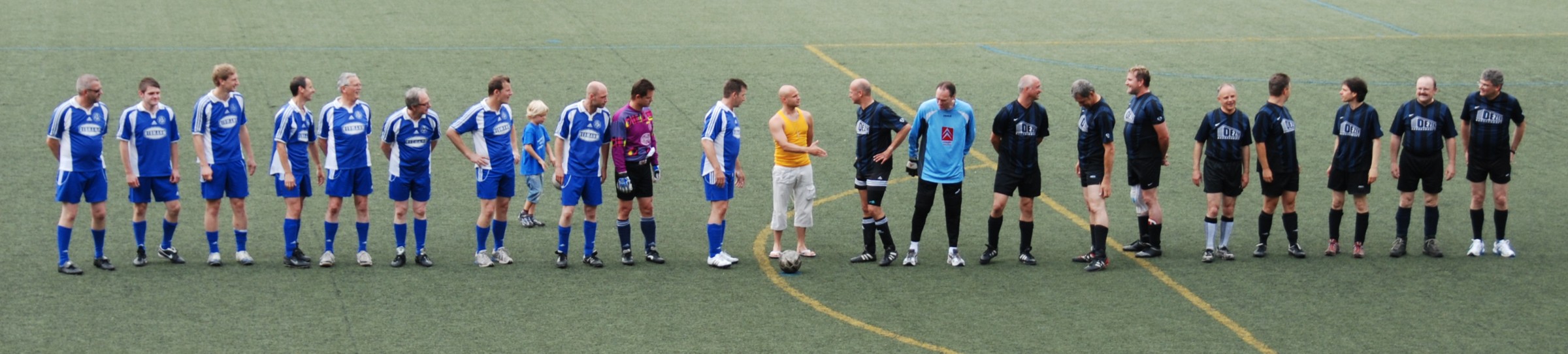 Derbys damals und heute - Mannschaftsfoto Ü45 der Kickers und der 08er